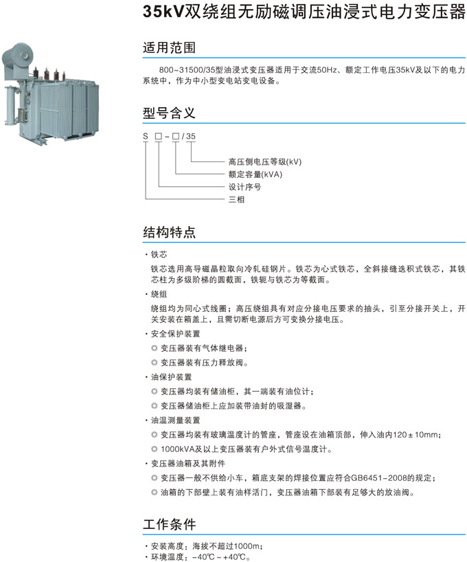 35kV雙繞組無勵磁調壓油浸式電力變壓器